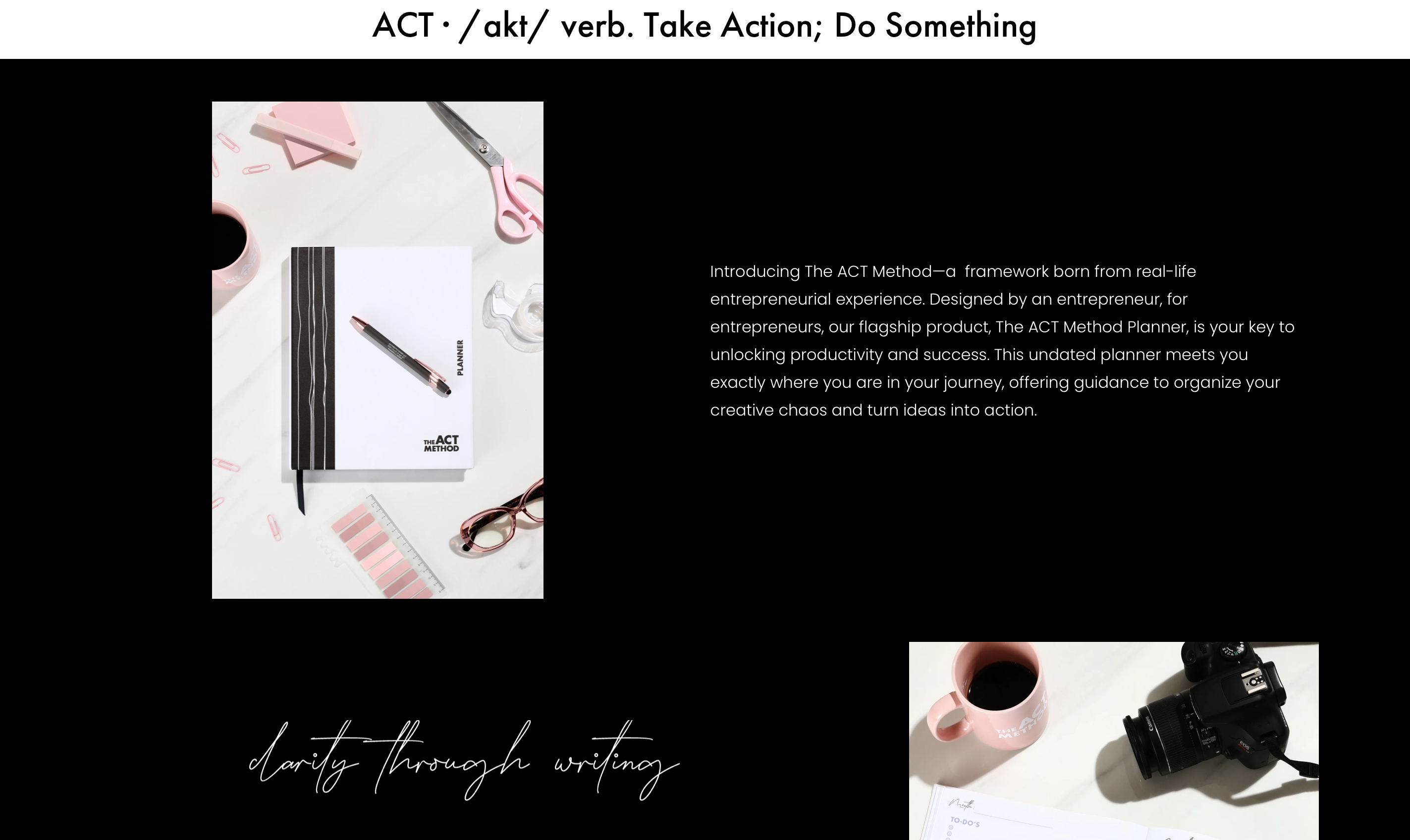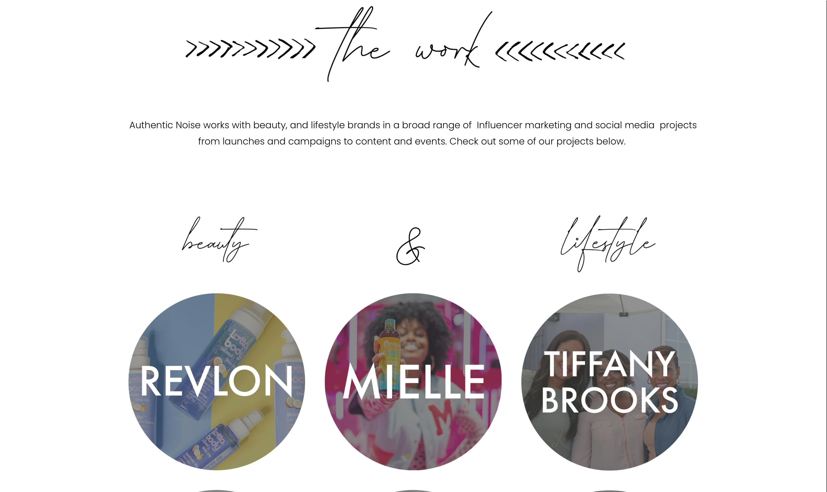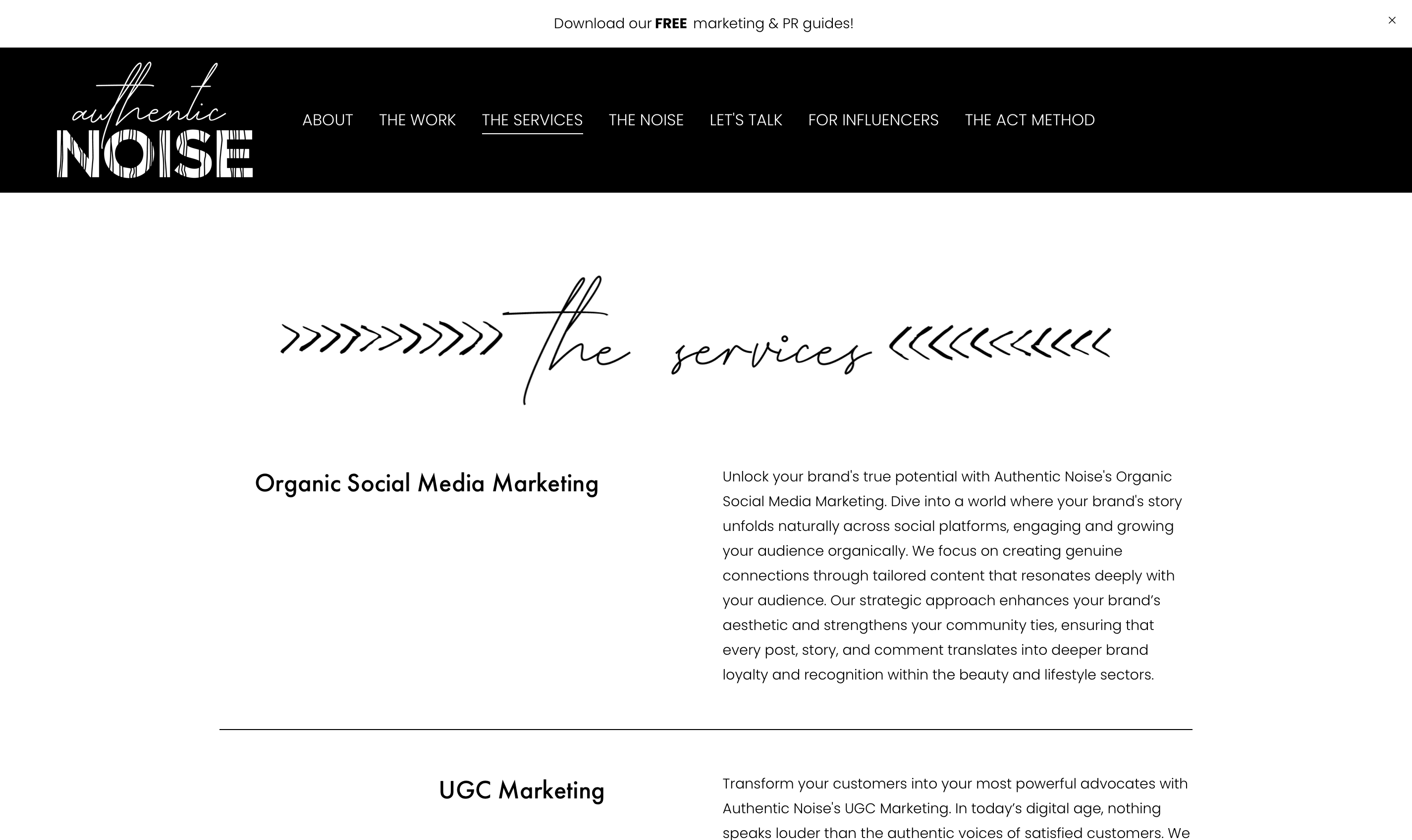 Shortly after, I was entrusted to implement changes to AN’s Squarespace website: authenticnoise.com. These changes included revamping “The Services” page, adding in new client brands to “The Work” page and the introduction of a new branching brand started by AN’s leader herself: The ACT Method.