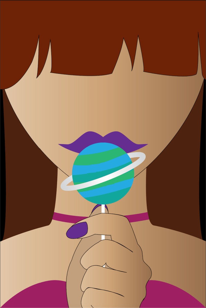 A practice in illustration and designing for web/mobile use. The concept was to create phone wallpapers depicting female characters holding planetary lollipops. All assets were designed in Adobe Illustrator, then exported as Tiff files.